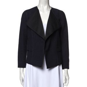 Vince Navy Black Open Jacket Small Cotton Blend Boucle Long Sleeve Work Fall
