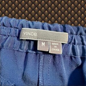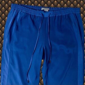 Vince Navy Blue 100% Silk Drawstring Waist Tapered Slim Leg Tuxedo Stripe Pants