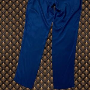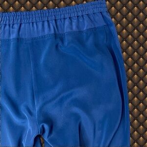 Vince Navy Blue 100% Silk Drawstring Waist Tapered Slim Leg Tuxedo Stripe Pants