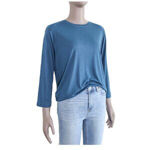 Elevate your everyday wardrobe with this Vince navy blue basic 3/4 sleeve casual top! This soft, luxurious top features a timeless minimalist design and a versatile navy blue hue, making it a perfect layering piece for any season. The relaxed fit and 3/4 sleeve length offer both comfort and sophistication, ideal for pairing with jeans, skirts, or trousers.