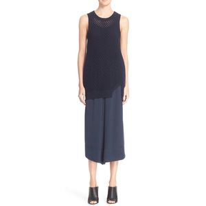 Vince Navy Blue Diagonal Mesh Cotton Tunic Tank