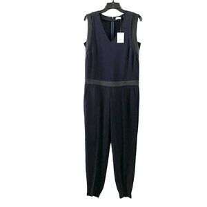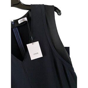 Vince Navy Blue Pintuck Jumpsuit Size 4 Sleeveless Slim Leg V Neck Cuffed Ankle