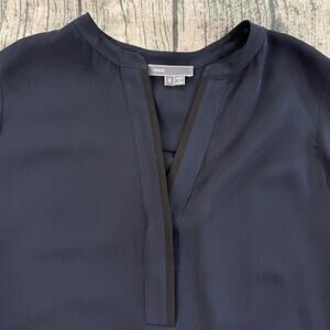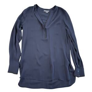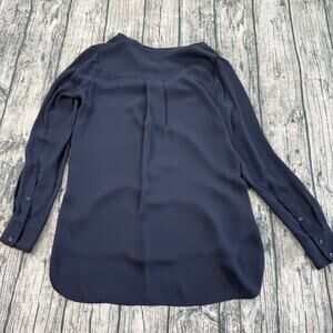 Vince Navy Blue Silk Button Up Long Sleeve Top Blouse Size 8
