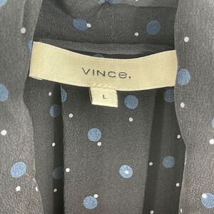 Vince Navy Blue Silk Sleeveless Shadow Dot Drape Neck Blouse Size Large