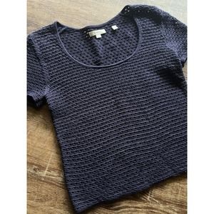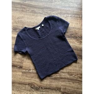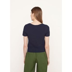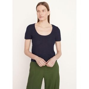 Vince navy blue short sleeve textured scoop neck top. Size small. Crotchet like knit. Good condition. Made from Italian cotton.