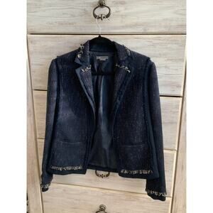 Vince Navy Blue Tweed Blazer - XS with Fray Accents