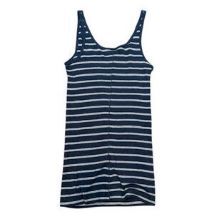 Vince Navy Blue and White Striped Ribbed Knit Long Tank Stretch Size Medium