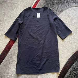 Vince Navy V Neck 1/2 Sleeve Minimalist Shift Dress