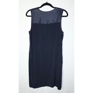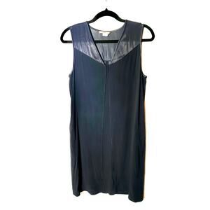 Vince Navy V-Neck Matte And Shine Sheath Dress Small 99% Viscose 1% Elastane