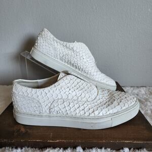 Vince Nelson White Leather Slip On Sneakers Python Pattern Size 7