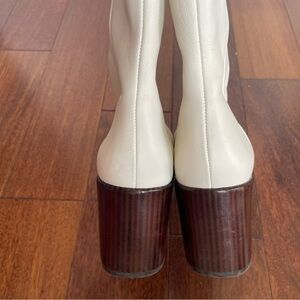 Vince Nicco Leather Boot White Wood Patform Heel Clog Zipper Womens