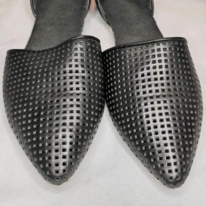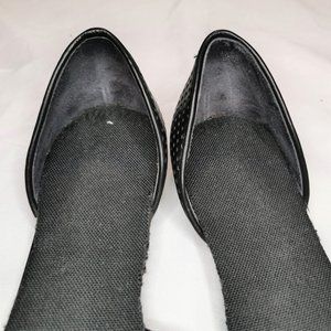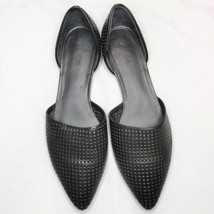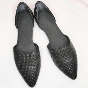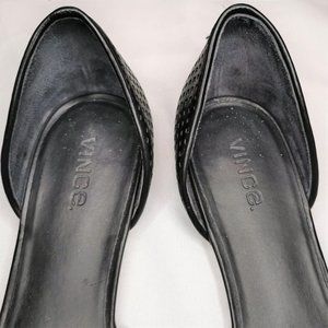 Vince Nina d'Orsay flats in black perforated leather. Pointed toes. White rubber soles.