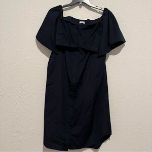 Vince Off Shoulder Poplin Cotton Button Down Shirt Dress In Navy Blue Size 8