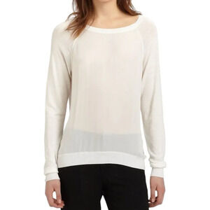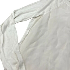 Vince Off White Silk Front Panel Linen Blend Knit Pullover Sweater L