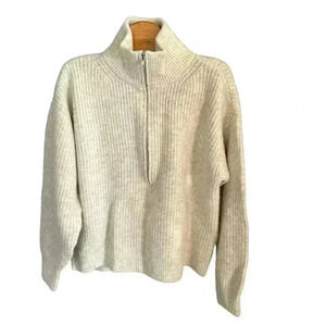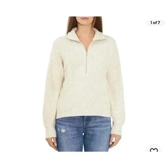 Chic off-white sweater with a stylish half-zip. Soft texture. Ideal for casual wear.