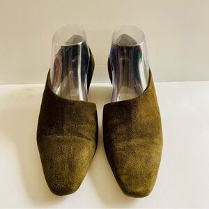 Vince Olive Green Suede D’Orsay Wedge Heels Size 8