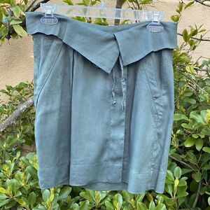 Vince Olive Linen Blend Fold Over Tie Waist Pocketed Mini Skirt. Size 0 EUC