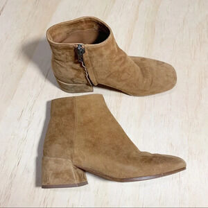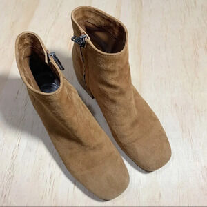 Beautiful brown suede Vince Ostend ankle booties. With a side zipper closure and squared toe. It’s the perfect minimalist boot. The block heel makes it super trendy and comfortable all in one. Size 6 in great used condition.