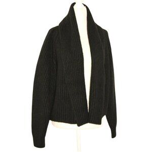 Vince Oversize Shawl Collar Soft Plush WoolBlend Rib Knit Cardigan Black XS $465