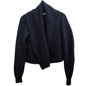 Vince Oversize Shawl Collar Soft Plush WoolBlend Rib Knit Cardigan Black XS $465