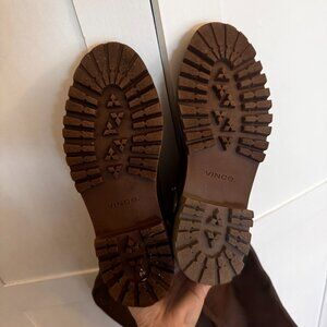 Step out in style with these Vince over-the-knee leather boots, combining modern design with all-day comfort. Crafted from soft, high-quality leather with a stretchy fit, these boots hug the leg beautifully and pair effortlessly with dresses, skirts, or skinny jeans.