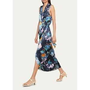 Vince Painted Bouquet Sleeveless Satin Wrap Dress - M