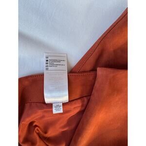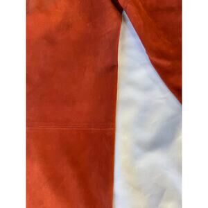 Vince brick colored burnt orange red culotte cropped wide leg 100% genuine suede. Sold out in the stores. Perfect for fall and winter! Size 6. So buttery soft. Tailored waist and lined. **Note: there are 2 small holes near the waist next the zipper and some discoloration on the back legs. Need to be dry cleaned. Please see photos showing dirt on the hems of each leg, holes near side zipper, and discoloration on the back of legs.