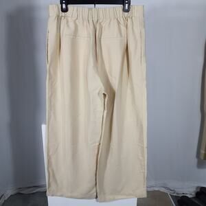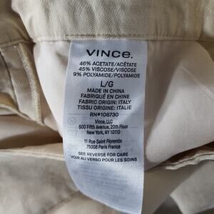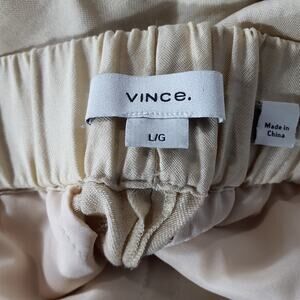 Vince Straight Leg Pull On Pants Size L: high waist, back welt pockets, mid rise, slips on with a flat front and elasticated back waistband, straight leg falls with a lightweight drape, measurements: 34" w x 26.5" inseam.