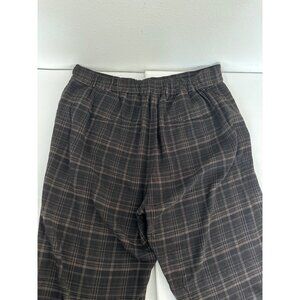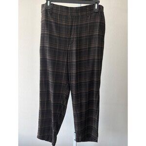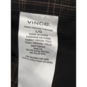 Vince Pants Sz L Quiet Luxury Plaid Viscose Brown Relaxed Trousers Pockets Comfy