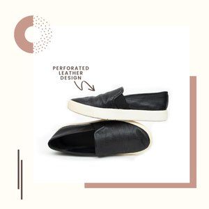 A casual slip on shoes elevated with its leather exterior, white soles and perforated upper texture. This Vince pair of slip ons are the easy choice for the in the go mothers and hard workers who rightfully cannot be bothered to tie their shoes. It has a stretchy material for ease of use. In great used condition. Soles are in good used condition.