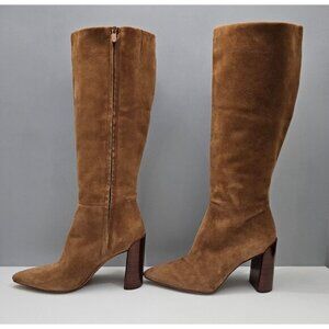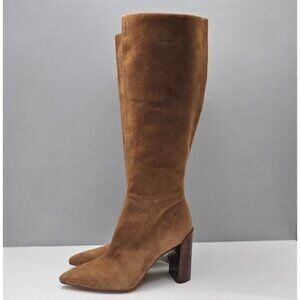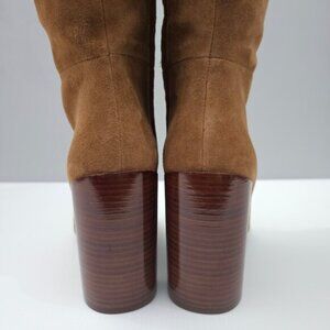 Vince Pilar Knee High Boot Women 9.5 WIDE CALF Amber Brown Suede Block Heel Fall