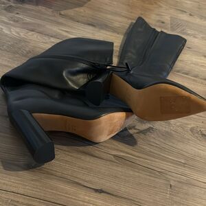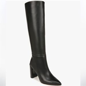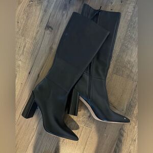 Vince Pilar Black Leather Knee Tall Boot Zip Block Stacked Heel 10M