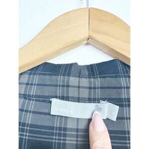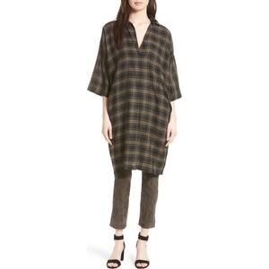 $295 Vince Plaid Easy Pullover Cotton Shirt Dress Small Military Green Oversized