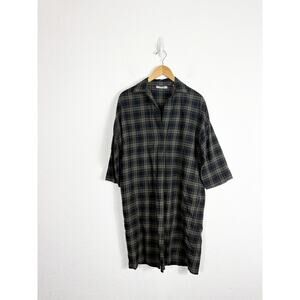 Vince Plaid Easy Pullover Cotton Cocoon Shirt Dress Small Green Lagenlook