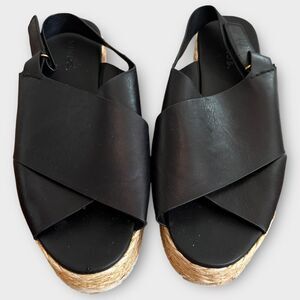 Vince Platform Espadrille Sandals Jesson Black Leather Size 9 EU 39.5 EUC
