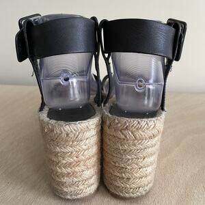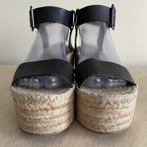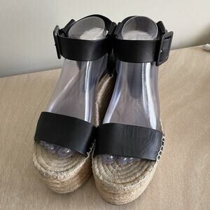Vince Belisa Ankle Strap Platform Wedge Sandals Size 8 Black Leather Minimalist.