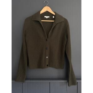 Vince Plush Cashmere Polo Buttoned Cardigan Green Size Large
