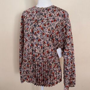 Vince Printed plissé-satin blouse pleat style long sleeve