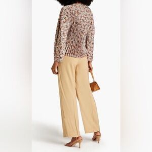 Vince Printed plissé-satin blouse pleat style long sleeve