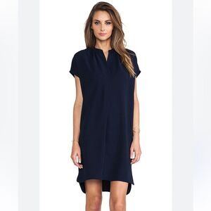 Elegant dress in deep blue. Features cap sleeves. Perfect for any occasion.