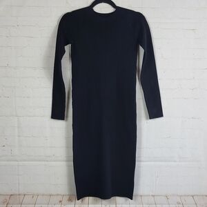 Vince Preppy Fall Ribbed Long Sleeve Sweater Knit Bodycon Midi Dress Black XS