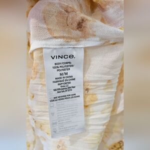 Vince Pressed Petal Blouse Yellow Floral Pleated Crinkle Semi Sheer Top Size M