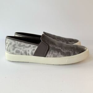The Preston slip on sneaker by Vince in an embossed lizard leather - Vince called the color Silver Lizard, but it’s a mix of gray, cream, and brown tones. Size 7. Gently used.