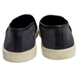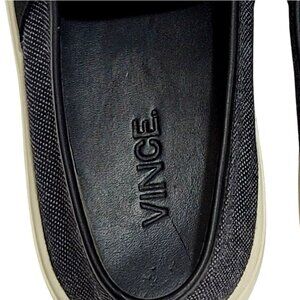 Crafted with a chic leather trim, these black slip-on sneakers by Vince offer style and comfort in every step. Perfect for casual outings and daily wear.