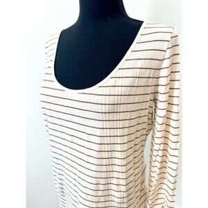 Vince Pullover Top in Cream and Brown Striped Size XL Long Sleeve Ribbed Knit