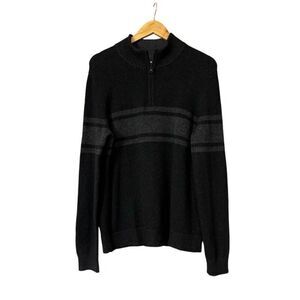 Vince Pullover Wool Cashmere Blend Sweater Gray Black 1/4 Zip Mens size medium. Black (charcoal) with grey striped detail. SOFT! Ribbed cuffs and trim.