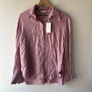 Vince RELAXED LONG SLEEVE SILK BLEND BUTTON-UP BLOUSE IN LILAC STONE Sz L