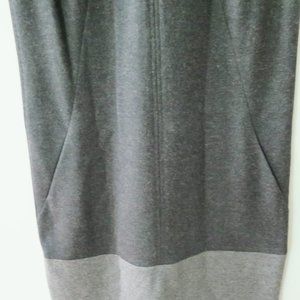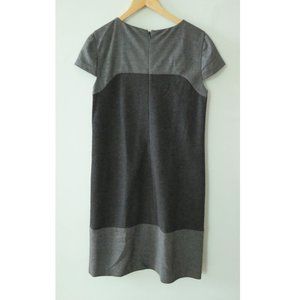 Great fall and winter dress. Grey and charcoal Vince wool and angola knee-length dress with scoop neck cap sleeves and concealed zip closure at back. The dress is not lined. Gently used condition, no stains, pulls, or tears.