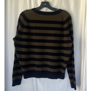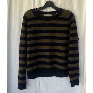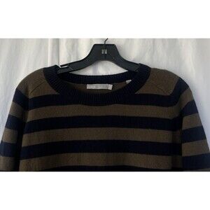 Vince Regiment Stripe Sweater Women's XS Navy Brown 100% Cashmere Crew Knit