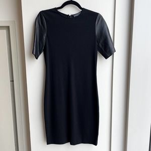 Vince Revolve Leather Sleeve Pencil Shift Dress - Size 4
